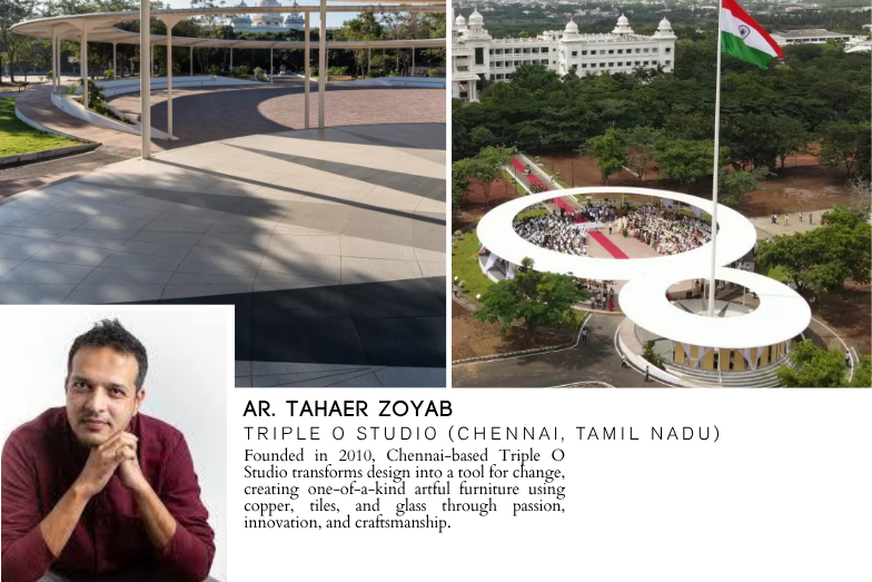 Inspired by the power of design to create positive change, Chennai-based Triple O Studio (On Our Own) was founded in 2010. Blending artistry and innovation, the firm pioneers the use of copper, tiles, and hand-etched glass in furniture, crafting unique statement pieces that reflect passion, craftsmanship, and a shared design philosophy.