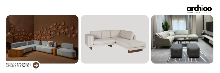 The moment you step inside, the balanced design of the home exudes a sense of openness and tranquility. The living room, with its expansive seating arrangement and elegant backdrop, sets the tone for the entire residence. The L-shaped sectional sofa upholstered in muted gray fabric provides both comfort and style, grounding the space in understated luxury.