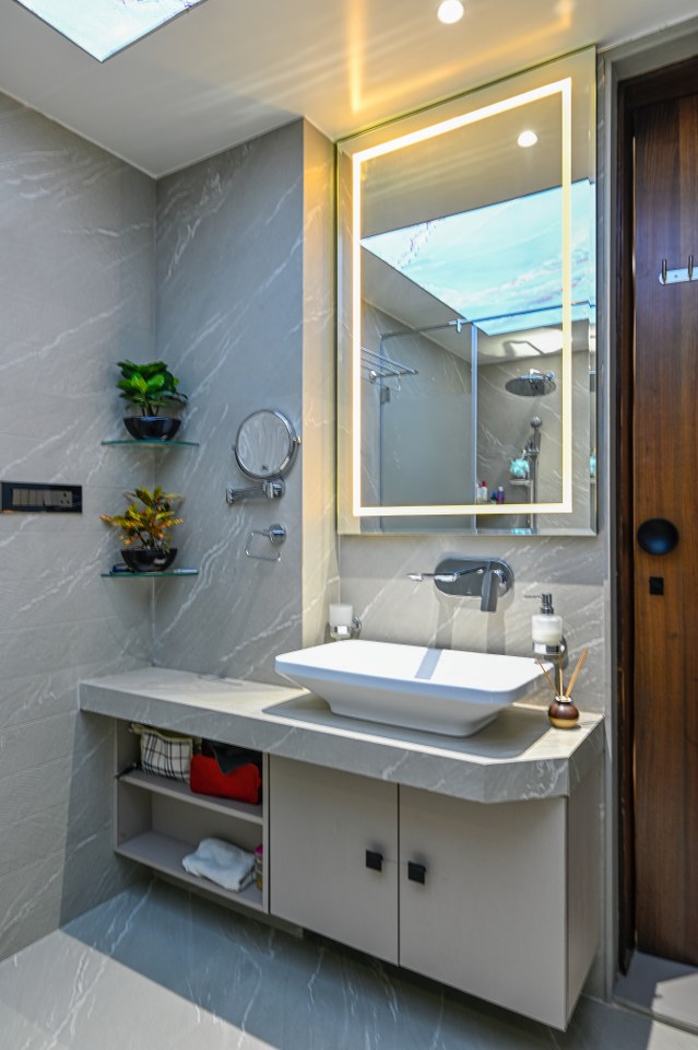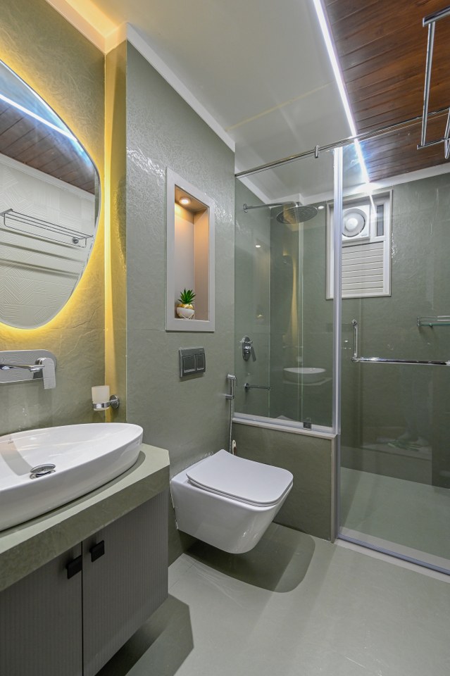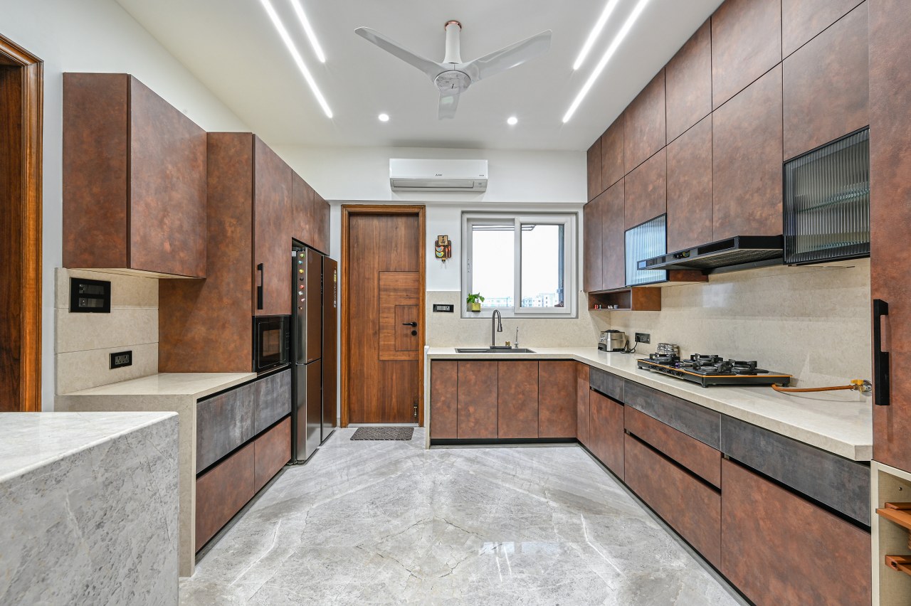 Products / Materials / Vendors: Wallcovering / Cladding – Veener and Wood / Construction Materials – Ply + Veener / Lighting – Fuoco / Doors and Partitions – Wooden / Sanitaryware – Jaquar / Windows – Ventilia.india / Furniture – Admire Furniture / Flooring – Italian / Kitchen – ABM Furniture / Paint – Asian Hardware – hettich