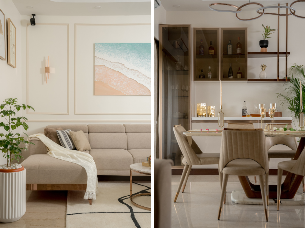 The clients, both working professionals in the IT industry, approached the design of their home with clarity and conviction. Their vision was a curated design that is elegant in a modern, sophisticated home with golden accents and a curated colour palette reflecting their style.