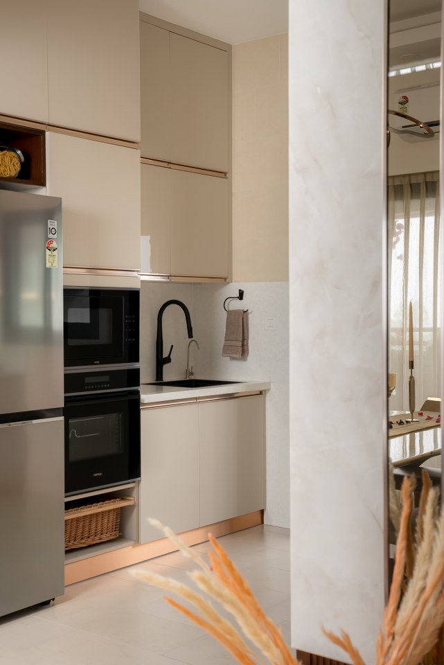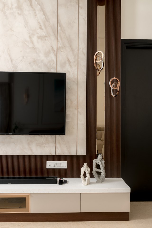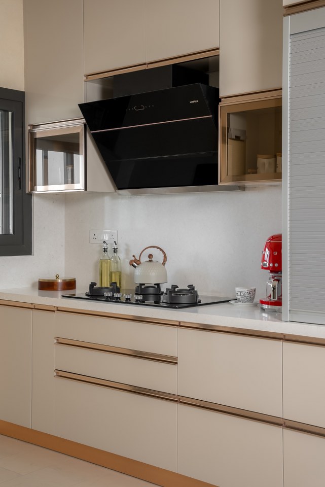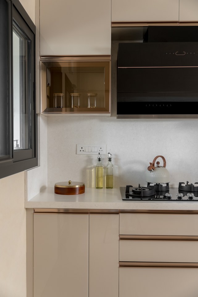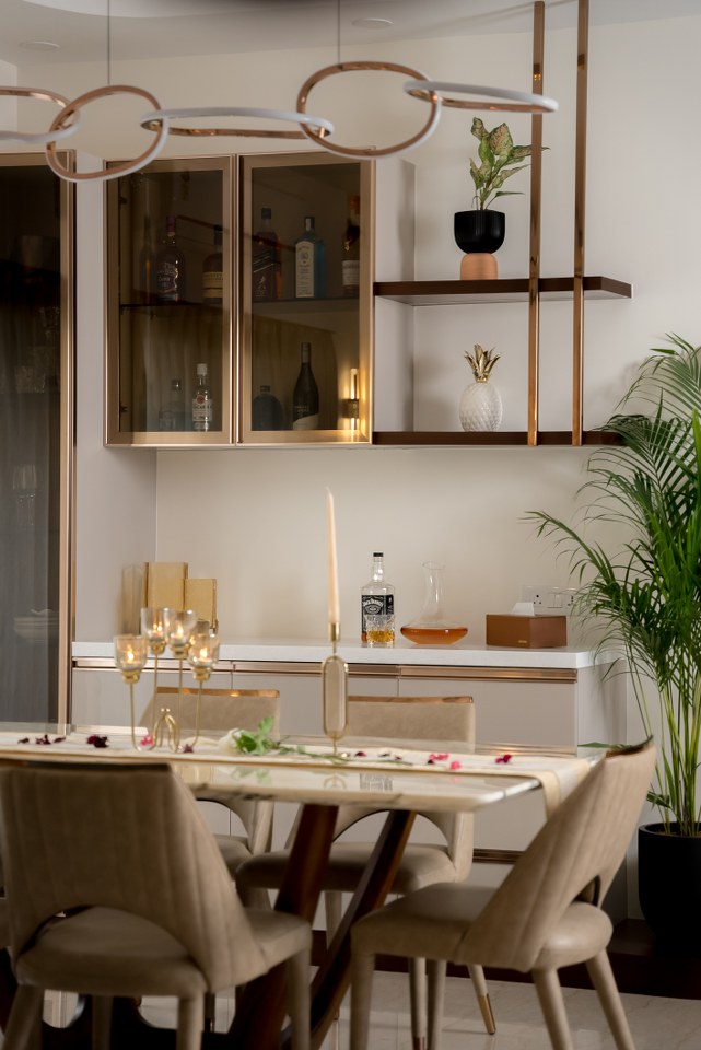 The design narrative unfolds under the theme of modern luxury, articulated through elegant detailing and deliberate restraint. Golden accents surface across trims, fixtures, handles, and carefully chosen décor, striking a chord between understated glamour and timeless sophistication.