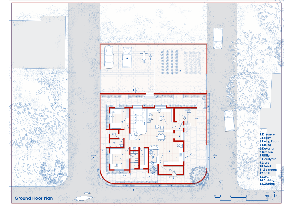 This residence is a testament to the harmonious fusion of modernity and tradition. By combining minimalist geometric forms with traditional elements like the terracotta jali, it reflects a perfect balance of innovation and cultural reverence.
