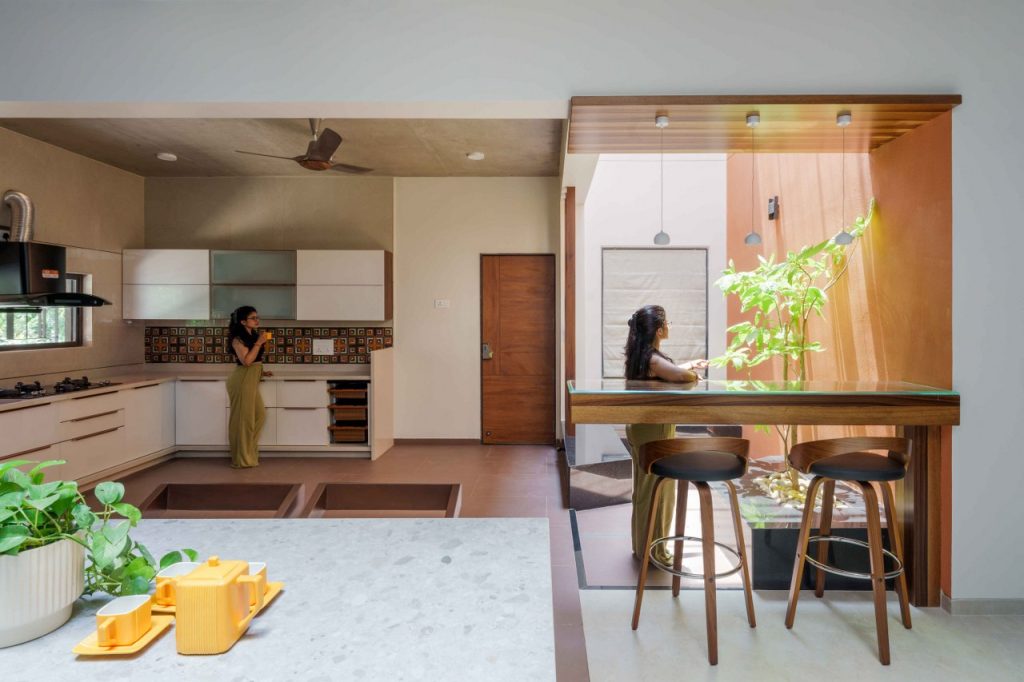 Aangan is a modern residence that seamlessly integrates with the lush environment of Kerala, showcasing a tropical home design. Designed to embrace the region’s warm climate, the house features a striking sloped terracotta roof at varying levels, enhancing both its aesthetic appeal and functional efficiency. The structure is enveloped in a vibrant tropical landscape, adorned […]