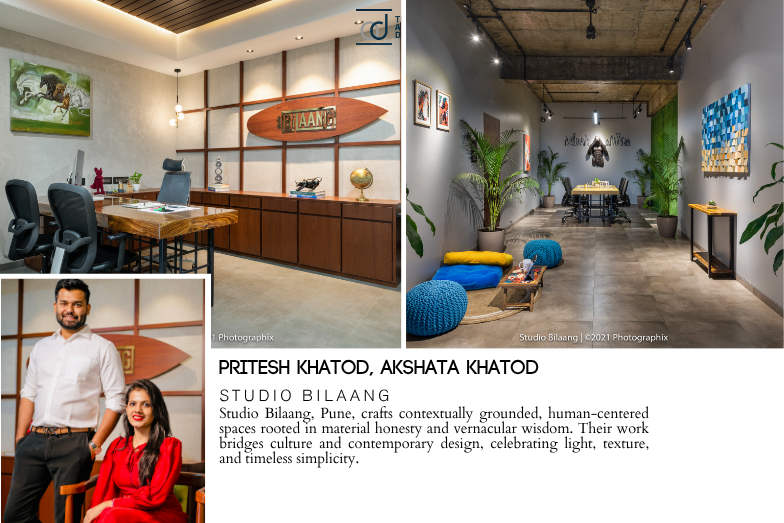 Studio Bilaang, Pune, is an emerging architecture and design practice driven by an ethos of contextual sensitivity and material honesty. The firm explores the intersection of culture, craft, and contemporary living, creating spaces that are both timeless and tactile. Each project reflects a deep engagement with the site, climate, and community, translating vernacular wisdom into modern architectural language. With a focus on experiential design, Studio Bilaang’s work celebrates simplicity, light, and texture—crafting spaces that resonate emotionally and spatially. Their approach redefines functionality through human-centered design, blurring boundaries between the built and the natural.