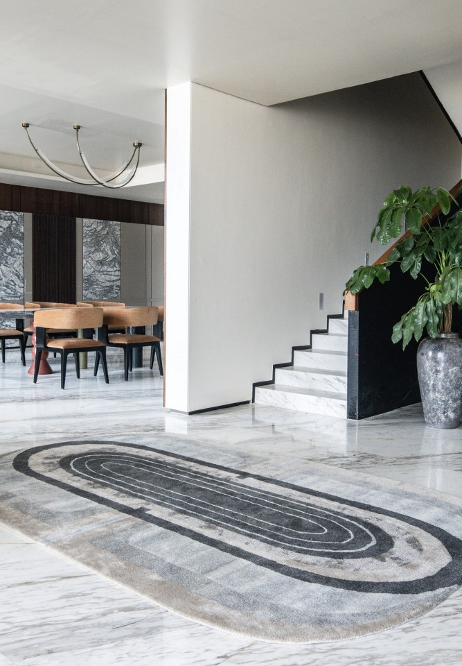 From the walls to the floors, textures and colours play off each other, creating a space that continuously surprises and engages.