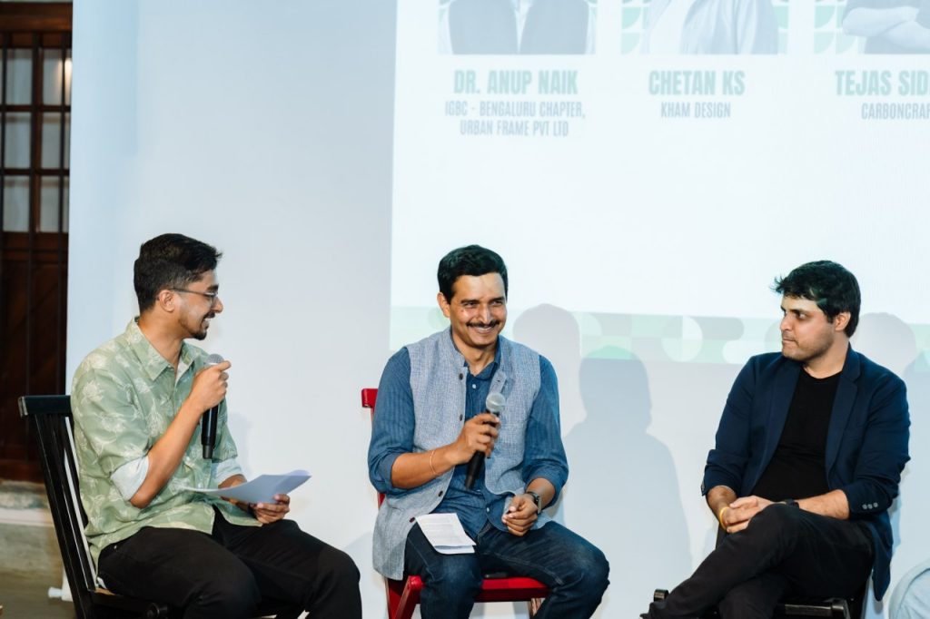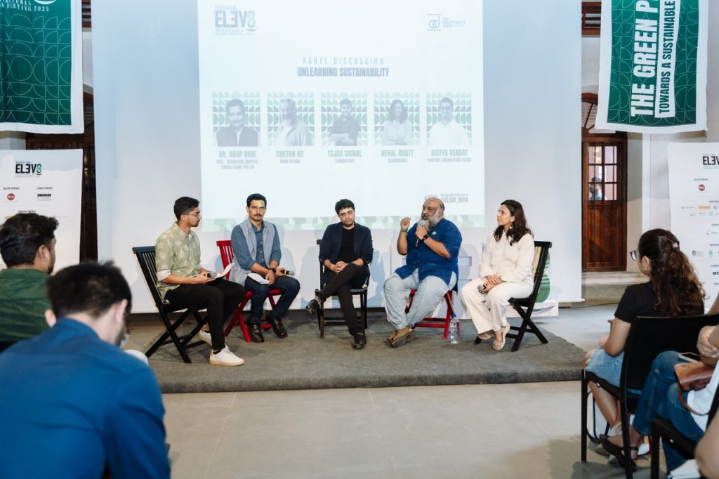 The panel turned focus toward India’s cities, especially Bangalore, where green certifications abound but urban fabric remains fragmented. They stressed that sustainability cannot thrive in isolated “islands of excellence.” It must be integrated through active citizenship, policy reform, and shared accountability. The dialogue highlighted the importance of vernacular wisdom in modern contexts. Designers were urged to treat it as a verb, emphasizing adaptability, reuse, and lifecycle thinking over nostalgia. The discussion expanded to viewing waste as a resource and analyzing material lifecycles like aluminum and steel. Speakers called for a deeper “cradle-to-cradle” understanding of design. The takeaway was clear: India’s sustainable future lies in scaling local ingenuity through collaboration, responsibility, and regenerative design thinking.