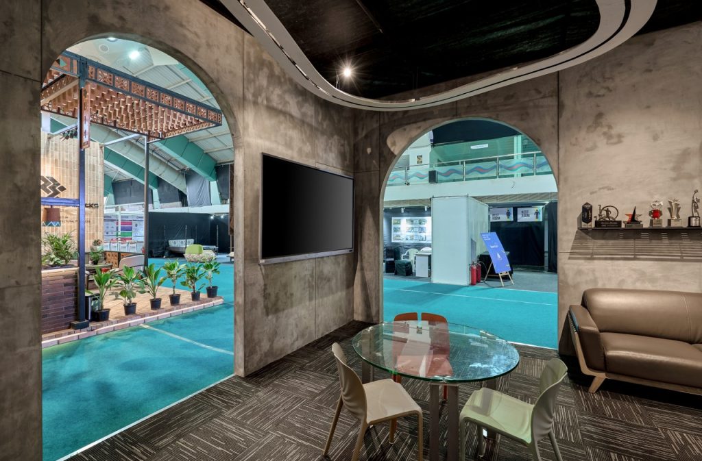 Sustainability operated at three strategic levels: shared infrastructure to minimize duplication, repurposed materials salvaged from Office Konnect’s previous store, and post-exhibition adaptability, with graphics and components designed for reuse in the brands’ respective offices.