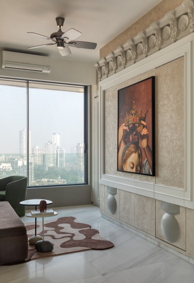 The home unfolds as a study in balance and timelessness. Designers reinterpret European references — panelled walls, ornate cornices, and classical symmetry — through a minimalist lens. They favour a restrained yet expressive material palette, using tactile textures and colours that evoke a sense of calm. Greek-inspired detailing forms a subtle undercurrent throughout, most profoundly felt in the children’s room and custom-crafted elements that echo ancient architectural geometries.
