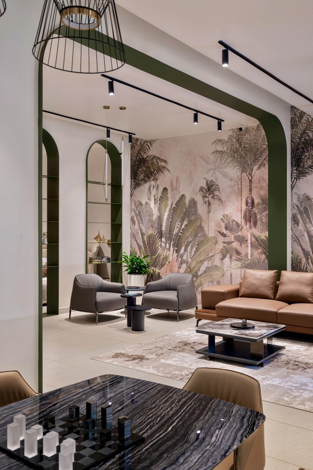 The team often compared it to reading a book – each chapter self-contained but hinting at the story ahead. The designers stage the furniture in contextual scenes rather than lining it up as product, so visitors move through atmospheres instead of displays and become immersed in a narrative rather than a catalogue.