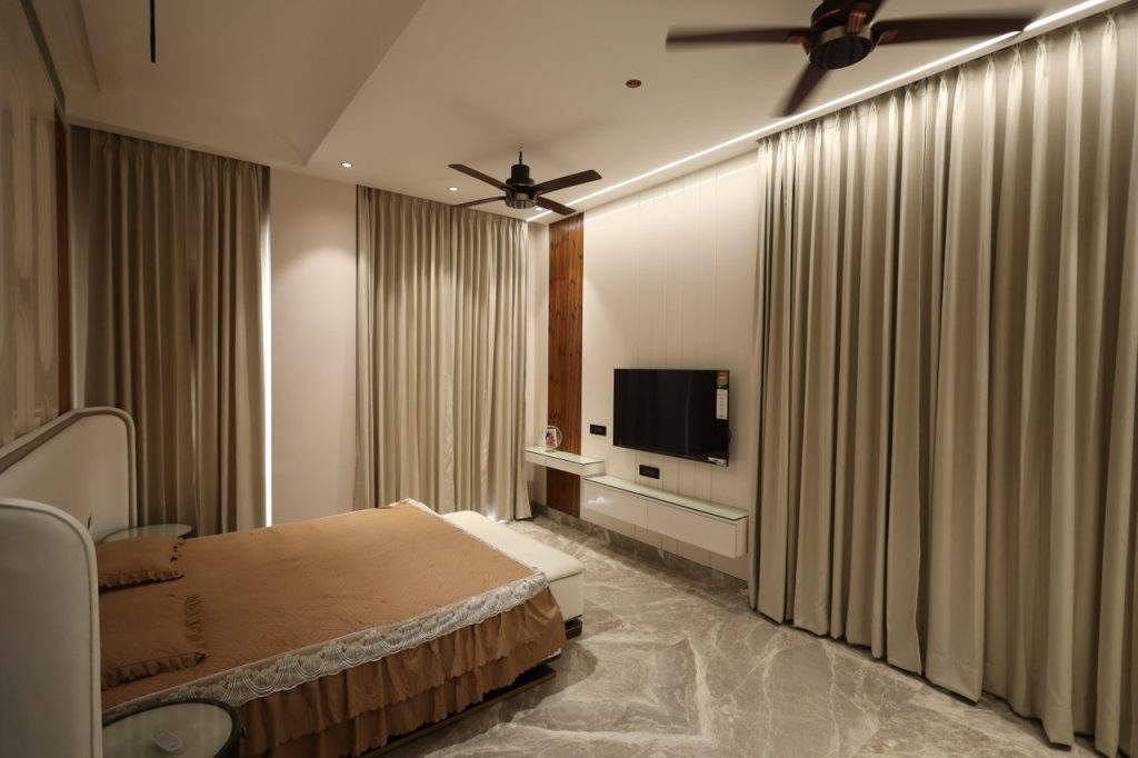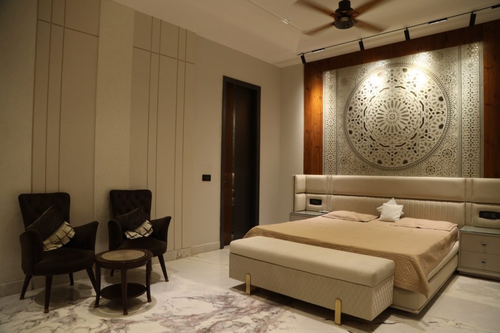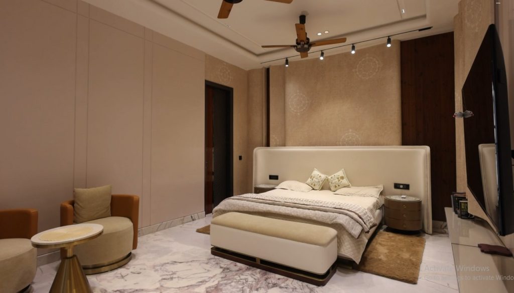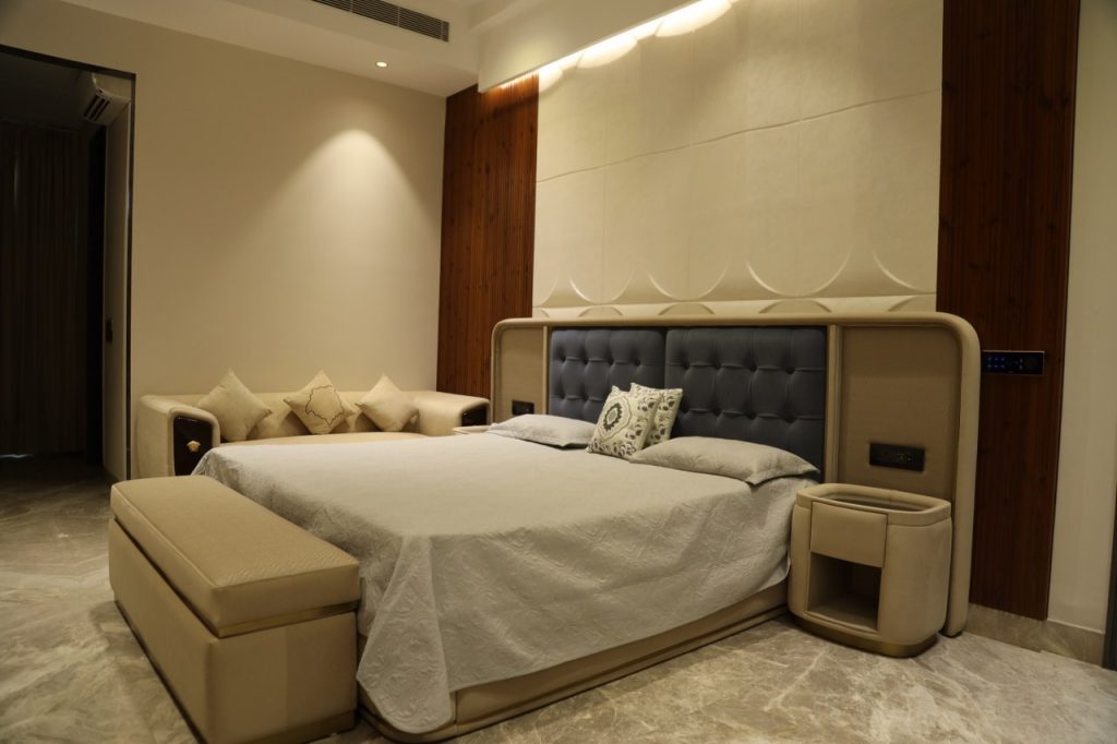Conceived as a private haven within the larger narrative of the home, the Master Bedroom embodies the principles of restful luxury and spatial introspection. Functioning as a self-contained suite, it is composed of a generously sized sleeping area, a walk-in dressing space, and a finely detailed en suite bathroom – each flowing seamlessly into the next.