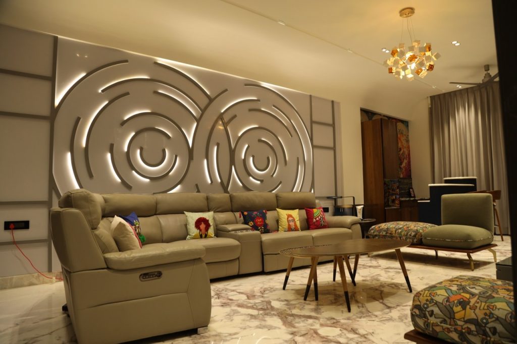 Products / Materials / Vendors: Wallcovering, Cladding – Century, Asian Paints / Lighting – Phillips / Doors and Partitions – Art’n’Glass / Facade Systems – Art’n’Glass / Furniture – Customized / Flooring – White Italian-Michaelangelo Paint – Asian Paints / Wallpaper – Asian Paints