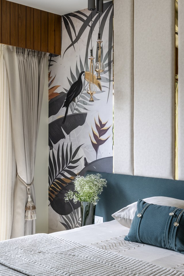 Inside, the bungalow unfolds as a narrative of personalities. Each bedroom tells a story, reflecting its occupant’s lifestyle and taste. One room bursts with creative energy through bold artwork and unconventional lighting, designed for a young professional with an artistic spirit. Another exudes calmness and warmth with muted tones, textured fabrics, and soft ambient lighting—a retreat for reflection and peace. For the elders, the design takes on a more classic charm, incorporating earthy colours and handcrafted furniture that evoke a sense of nostalgia and comfort.