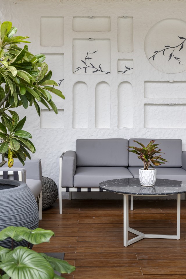 Products / Materials / Vendors: Finishes – ASIAN PAINT TEXTURES / Wallcovering, Cladding – WPC LOUVERS / Lighting – WHITE TEAK COMPANY / Sanitaryware – AQUILO / Facade Systems – VOX / Windows –TOSTEM WINDOWS / Furniture – G AND C CASA / Flooring – ITALIAN MARBLE / Paint -ASIANArtefacts – POLLINATION (THE DÉCOR WORLD) / Wallpaper – ASIAN / Hardware – OZONE
