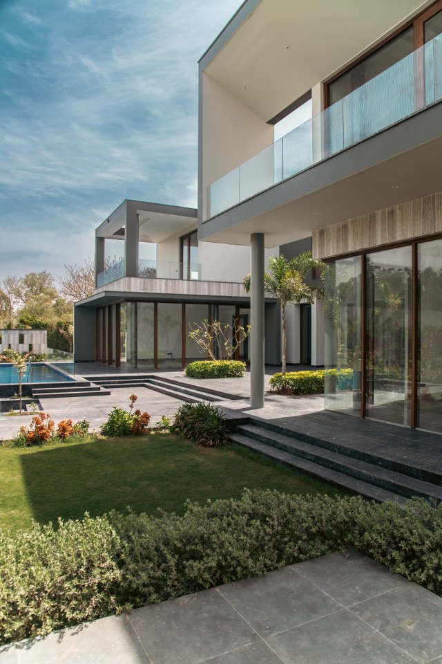 Few homes are celebrated for their iconic interiors, while some are celebrated for their open layouts. True to its unique context and subtleties, this home with a monochromatic palette, designed by Ar. Saumya Khanna & Ar. Sudhir Ambawata Co – founders & principle architects of SSDA Architects brings the essence of volumetric design and a touch of nature. This project, sprawling 13,000 sq. ft., commissioned for a renowned builder, features a planned six-bedroom house.