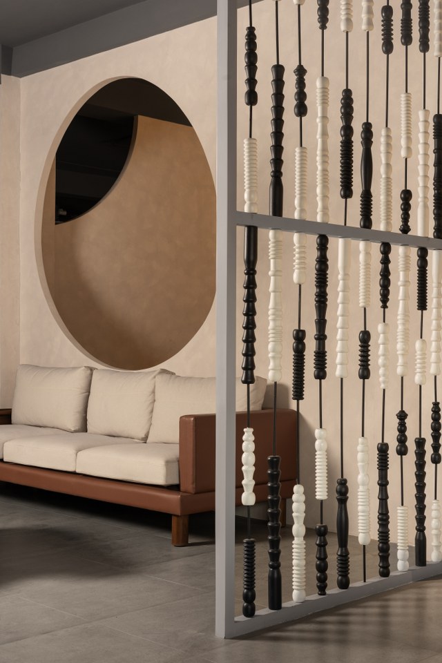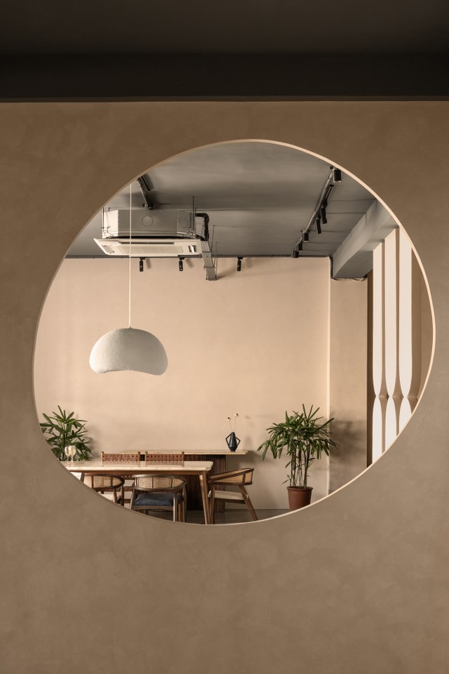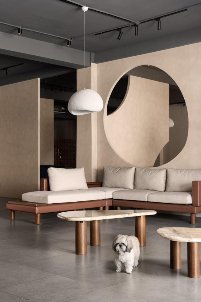 Lighting plays an integral role in defining the mood. Exposed light fixtures cast dynamic shadows that shift throughout the day. The interplay between structured architectural elements and the fluidity of organic textures creates a layered atmosphere. One that is as soulful as it is functional.