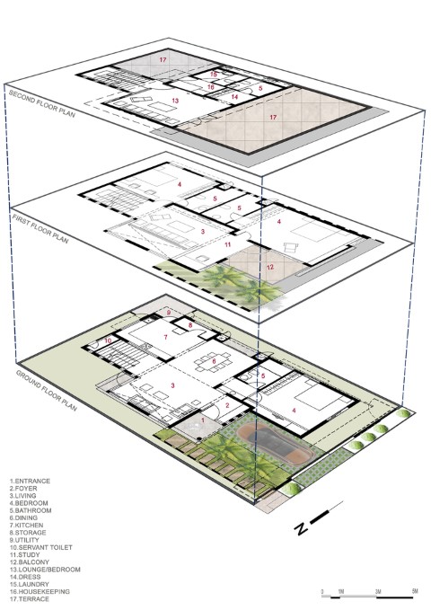 The concept was conceived as an abstraction of the traditional “Nadumuttam (central courtyard) concept” in most of the houses in Kerala, wherein the homes are composed around a focal landscape feature usually a Tulsi plant.