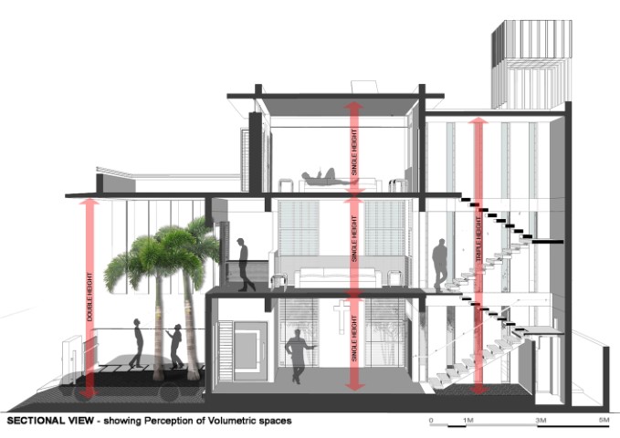 The Essence- Special Features In a dense urban context, we embraced nature with our built environment to focus on the dichotomy of interior and exteriors. The Palm tree that divides the parking and pedestrian path at a lower level act as a visual treat from Master Bed and common balcony at first floor with its foliage flowing into the balcony.
