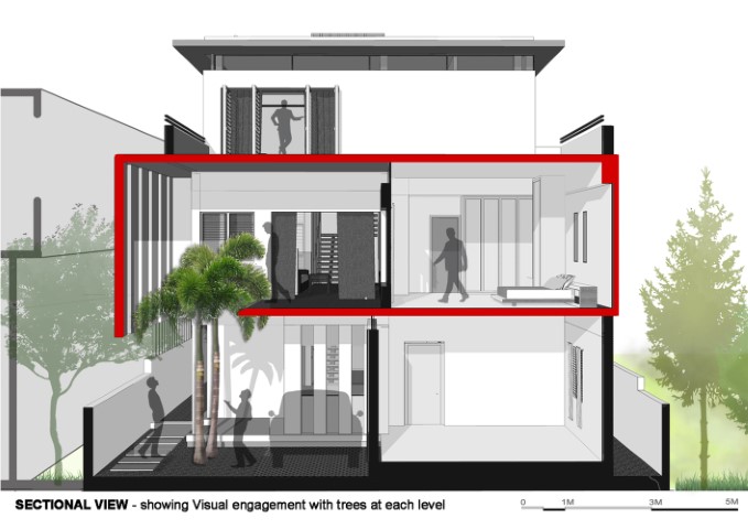As a response to his design brief, we came up with the idea of a ‘house that embraces trees’ we call it a ‘’Tree hugger, a contemporary urban residence with values of Kerala Architecture.’’