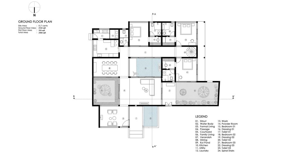 These green voids function as lungs of the home, channeling air, light, and calmness into the interiors. Every threshold is an invitation Quiet Retreat to pause, reinforcing the intimate relationship between house and landscape.