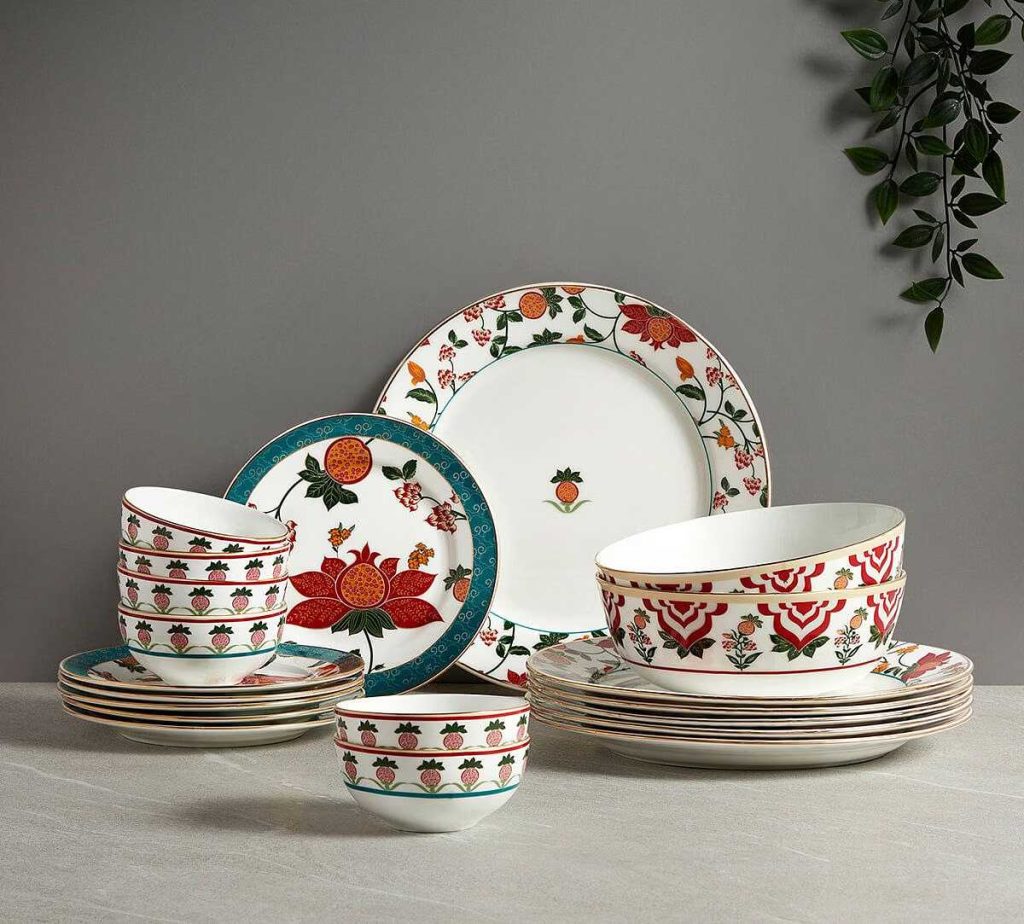 Dinnerware, when thoughtfully designed, becomes a timeless keepsake for every occasion, making it an unforgettable choice for festive gifting. From the floral whimsy of the Blushed Orchard set to the lush artistry of Regal Romance. The romantic charm of Petal Perfection, and the graceful symbolism of Peepal and Palm tray sets, each collection transforms the dining table into a canvas of design and celebration. Thoughtful, functional, and timeless, these sets make for gifts that linger far beyond the festive season. They add beauty to every gathering.
