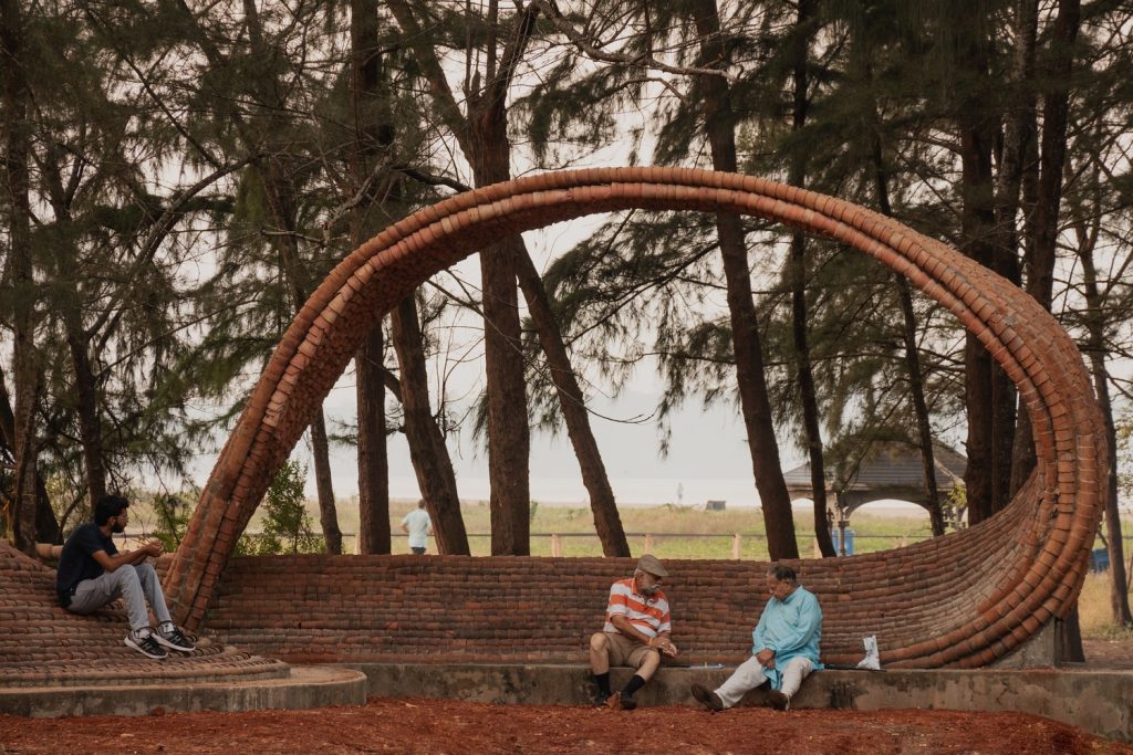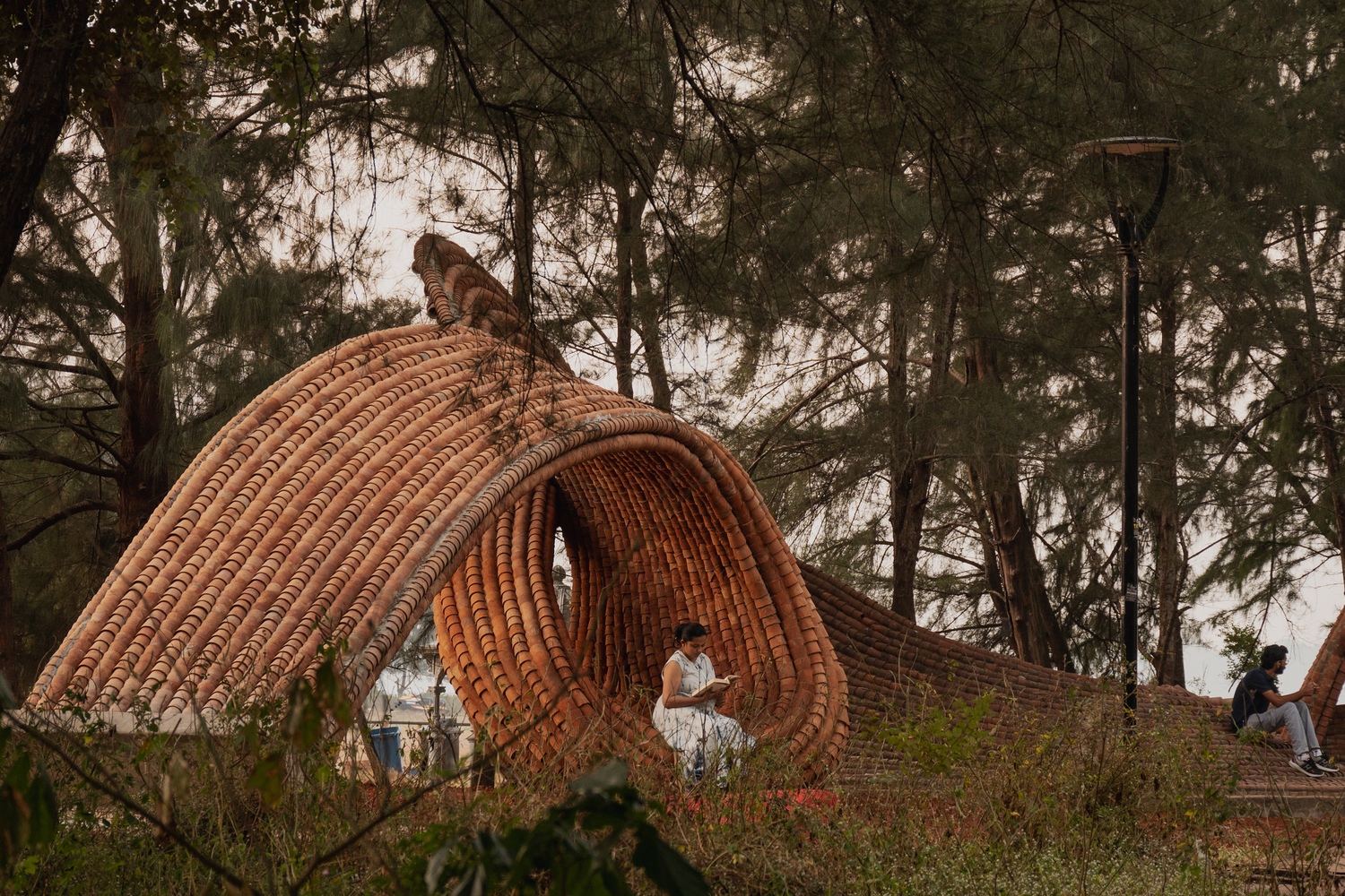 Made entirely with ‘kulhads’ or’mud cups’, the pavilion is not only a reminder of the sheer amount of waste, but also how it can be used positively to become a shade to the many who travel to the beach.