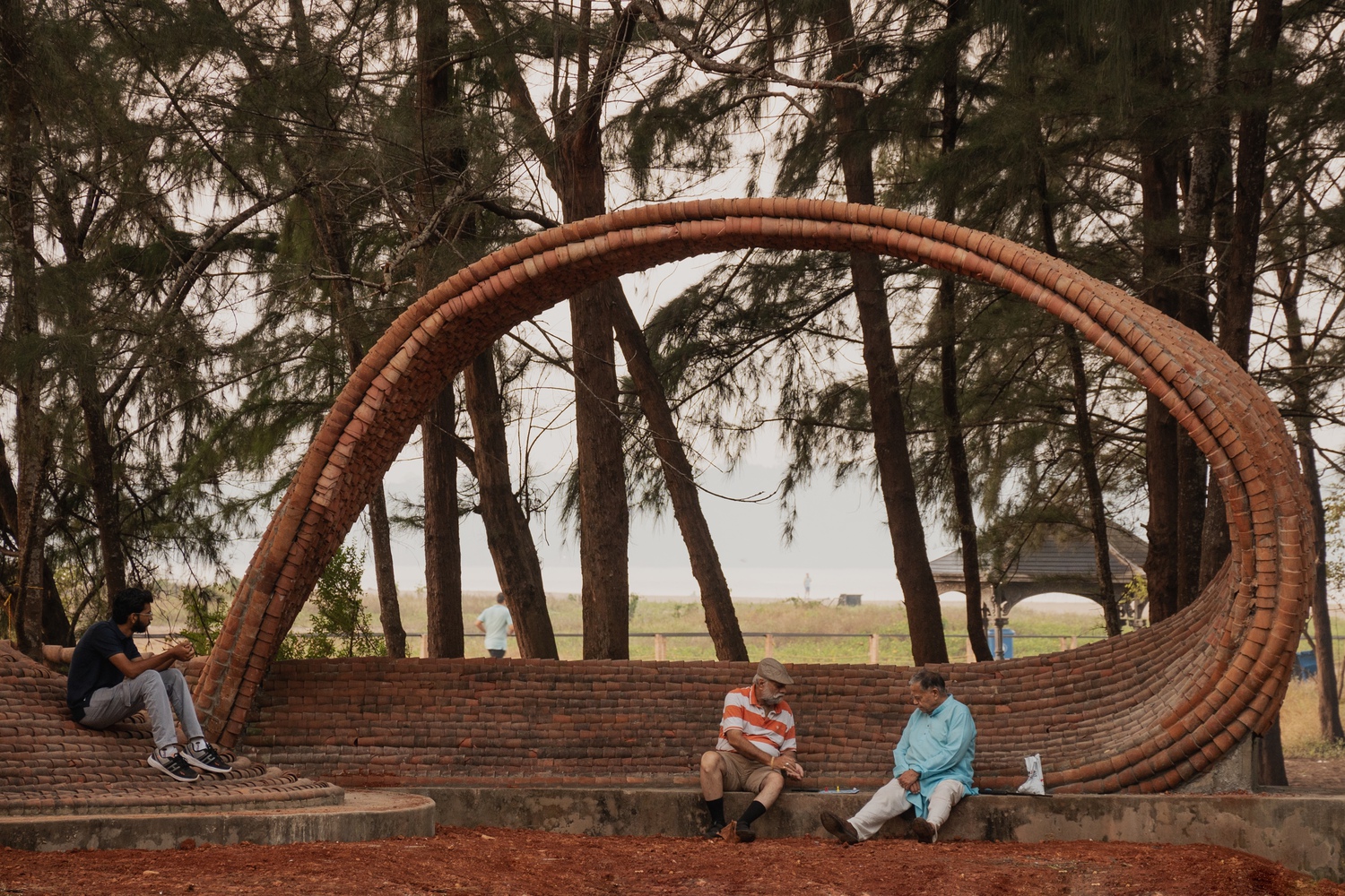 So when the opportunity arose to make a pavilion at the Miramar beach in Goa, as a part of the Serendipity Arts Festival 2025, it seemed apt to make a ‘Kulhad’ Pavilion made entirely of 18,000 ‘kulhad’s’ or terracotta cups collected from the local communities of Dharavi, Mumbai.