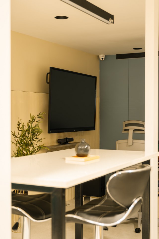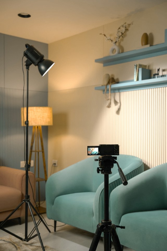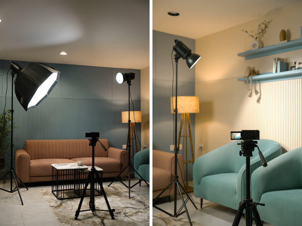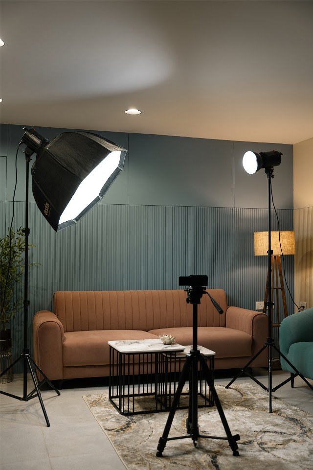 The design makes the studio a flexible zone that effortlessly adapts to multiple functions. Primarily serving as a meeting area, it fosters open discussions and collaborative exchanges in a relaxed setting. At the same time, its curated interiors — with comfortable seating, layered lighting, and a visually rich backdrop — make it ideal for social media shoots and content creation.