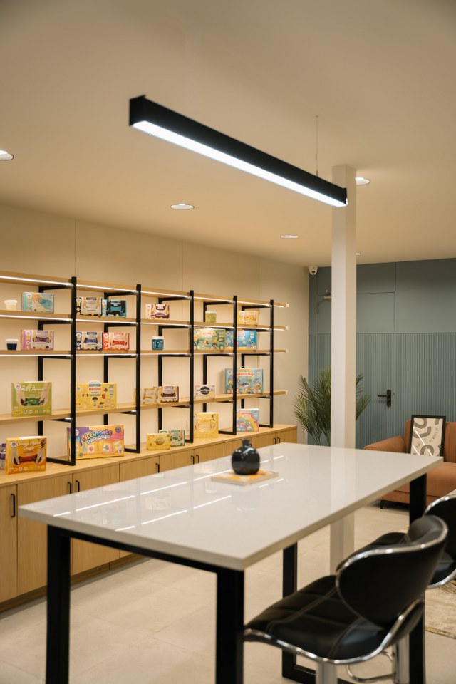 The lounge embodies the spirit of adaptability, merging work and creativity, professionalism and play. Each wall provides multiple frames for shooting their social media campaigns. The studio specifically reflects the ideologies of the brand’s product being vibrant and cheerful. It sets the right tone to convey the audience about the vision of the brand.