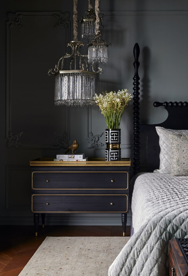 To flirt with charcoal color is to embrace courage and at this apartment in Delhi,Interior designer Disha Bhutani Subramanium turns that courage into poetry. Her debut project transcends conventions, proving that darkness can be both beautiful and whimsical. This residence doesn’t merely accommodate life; it stages it. Every surface, every glimmer of gold, every curated artefact contributes to a story where neoclassical grandeur meets restraint, and nostalgia finds expression in the contemporary.