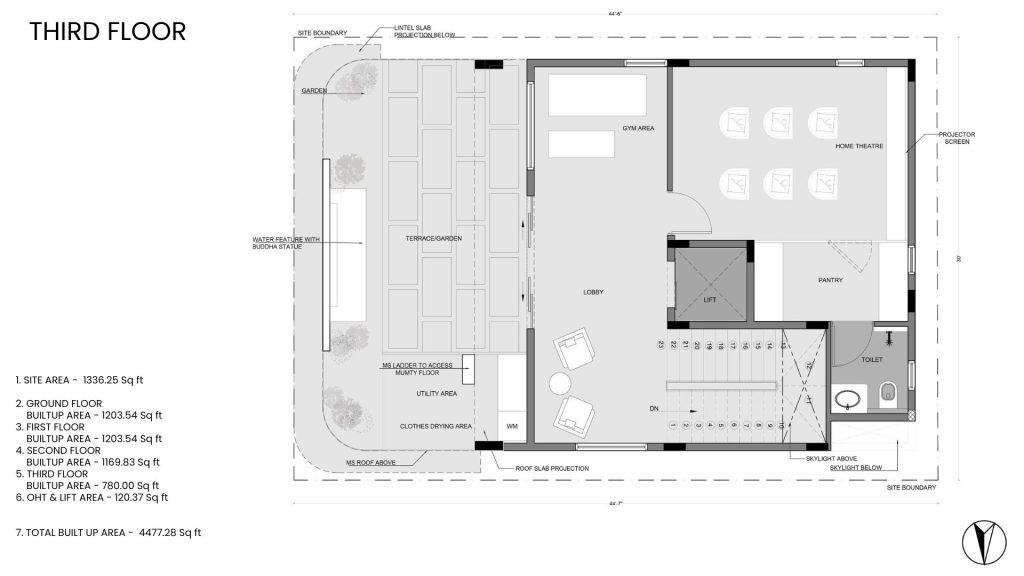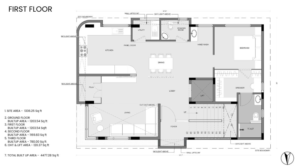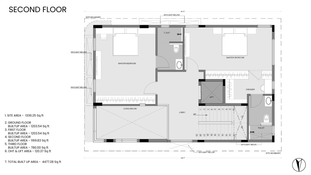 On a compact urban footprint, the architects sculpted a vertical home that defies its modest plot size, drawing the eye and the spirit upward, keeping openness in mind. Spatial connectivity was central to the design intent: floor plates are interconnected both visually and experientially, softened by natural light and enriched through seamless movement.