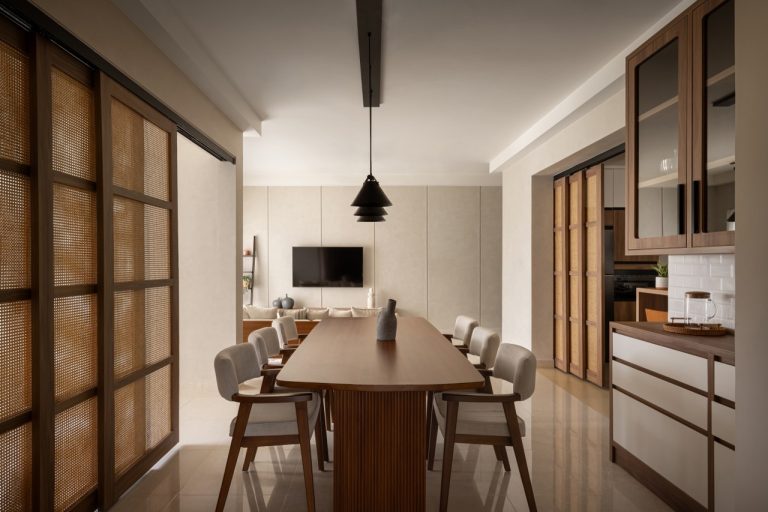 “The designers centered the design around creating a warm and tranquil sanctuary for a young couple, both doctors by profession—a cancer specialist and a dentist.” Their vision is a home...