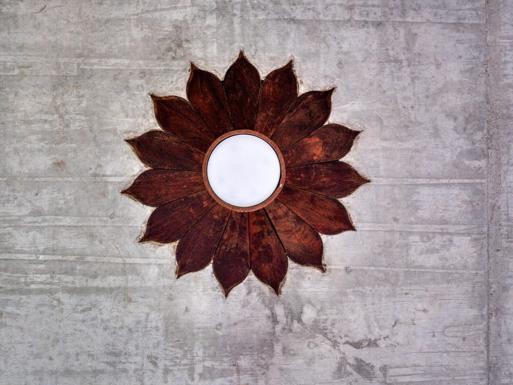 This sculpture marks the beginning of the art journey, leading naturally into the drawing room where familial bonds are celebrated through an artwork—a set of Lotus engraved in terrazzo floor and the main back drop of drawing room wall.