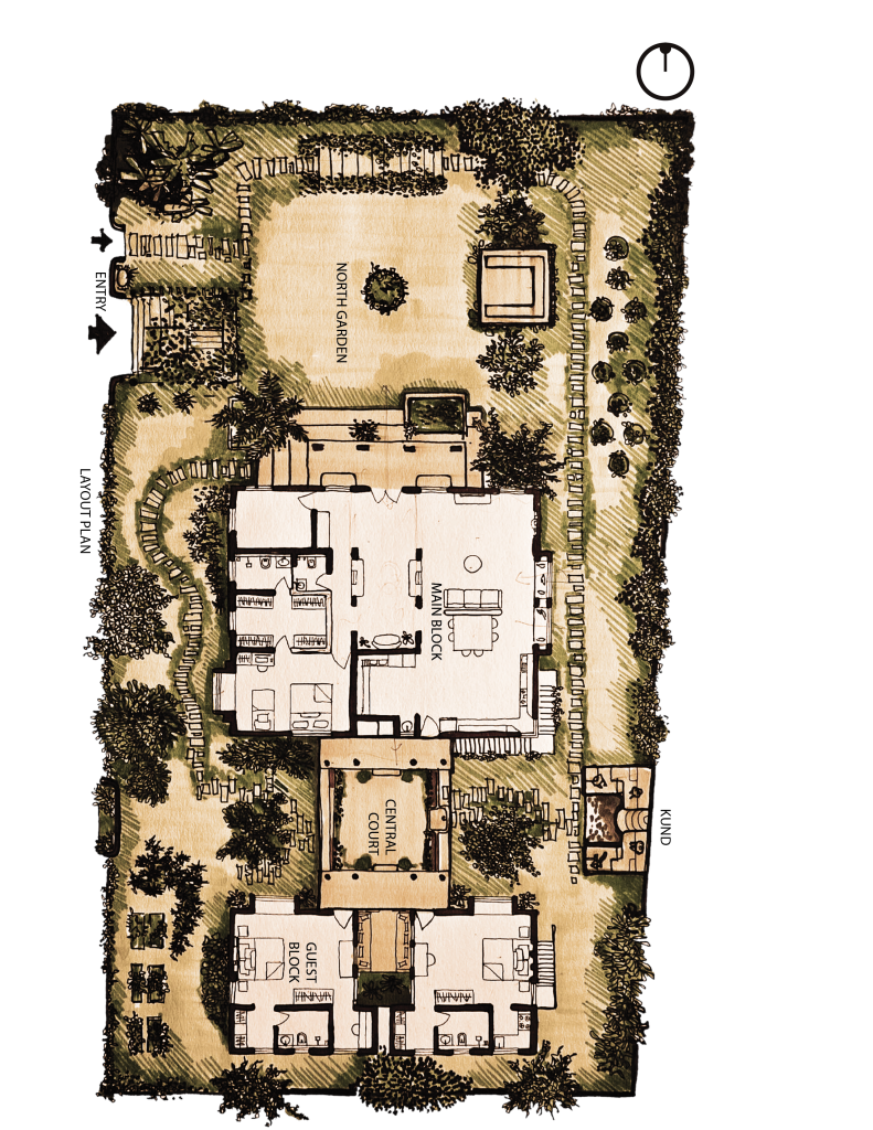 The mini Kund at Panchatatva is a serene water feature thoughtfully placed between two blocks, creating a harmonious connection between spaces. Designed as a conversation-oriented space, it encourages gatherings while enhancing the tranquil ambiance. This elegant design not only adds aesthetic appeal but also promotes natural cooling and relaxation, making it a refreshing focal point within the residence.