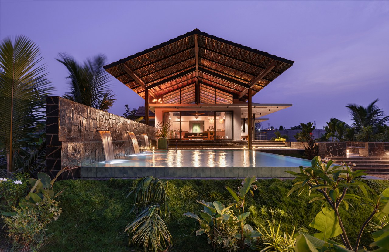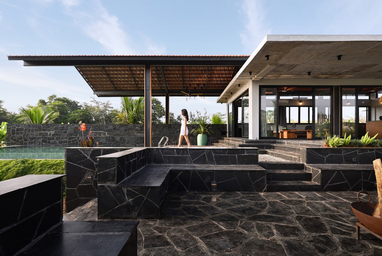 Because of our previous connection, we already knew the client’s grounded personality well, which essentially guided how we articulated the second home. From the very beginning, we aimed to create an architectural presence that naturally took root in the coconut and Areca palm-studded lush landscape, rather than appearing artificially placed or planted.