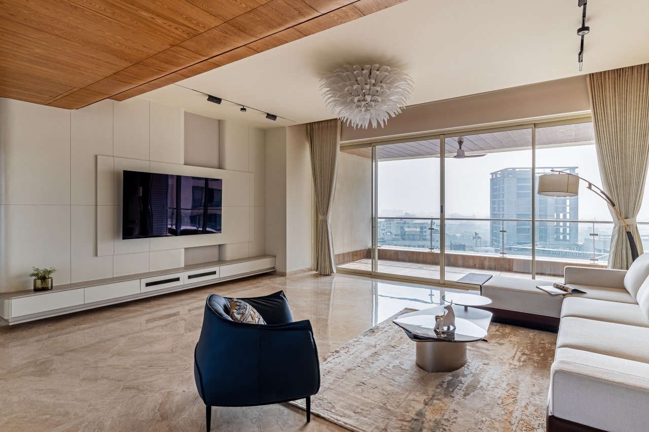 The balcony adjoining the living room is treated as an organic extension of the indoor space. With subtle flooring, minimalist railings, and open sightlines, it offers a refreshing visual break and adds value to everyday living. It invites natural light, encourages ventilation, and acts as a space for morning routines, evening tea moments, or simply enjoying quiet leisure.