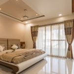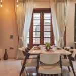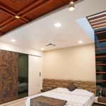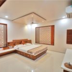 Be it contemporary or classical, it is almost like a mental association with Royalty, the life and era of the maharajahs, palaces, castles and so on. Gujarati’s are known for their diverse cultural heritage and rich traditions. architect has very aptly envisioned a vibrant mix of reviving traditional features giving an insight to historic India and its phenomenal diversity via beautifully carved out architectural décor and interiors. Even the curtains, large windows, and color scheme respond to the thematically planned bedroom very aptly.