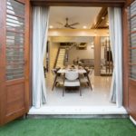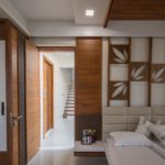 The whole house is given a personalized touch, individually for each space, making it the best possible place to reside for life. Comfort and functionality is well taken care of by providing comfortable headboards, functional study desk, wooden leisure deck, a natural source of light in the bedroom and also in the bathroom, stone with green grass cladding over walls adds to the thematic stylization of each room making it simple yet unique. Of course, while timber and its finishes are predominant in the space, this look is made soothing through elegant and ethnic choices of fabrics in the curtains tapestry the wall claddings.