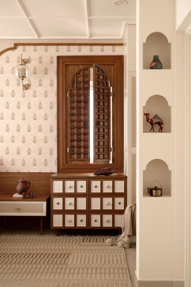 Rooted in the spirit of the wada, the design reinterprets traditional elements like intricate woodwork, earthy textures and regionally inspired art in a fresh, contemporary language.