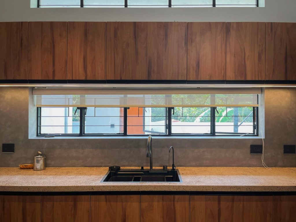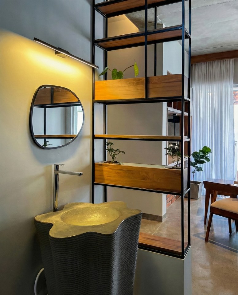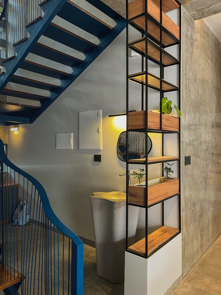 Products / Materials / Vendors: Wallcovering / Cladding – Polished cement plaster / Construction Materials – Concrete, Brick / Doors and Partitions – WPC / Windows – GI / Furniture -Wood, Engineered wood, Concrete / Flooring – Microtoping / Kitchen – Microtoping