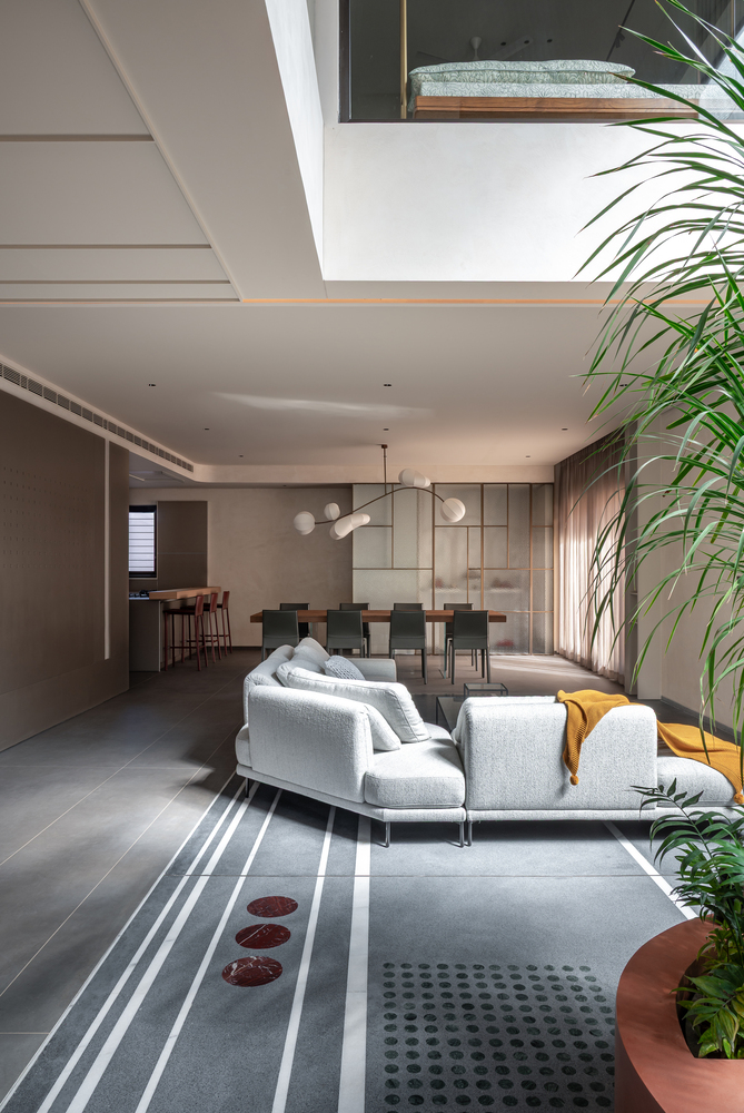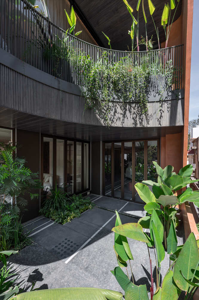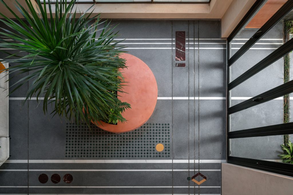 The onus was on working with a controlled material palette that ensures a warm ambience. An indoor courtyard with a double-height volume ensures visual and spatial connections between the floors.
