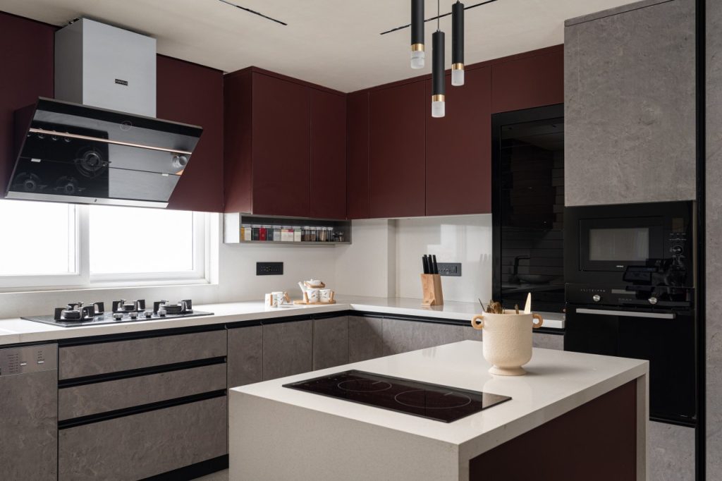 Shared spaces like the dining room and kitchen are designed for connection and ease. The dining area extends the visual language of the living hall with clean lines and a refined material palette, while the kitchen stands out as an expression of function meeting finesse. More than a workspace, the kitchen is a visual delight, tailored to the homeowner’s cultivated tastes.