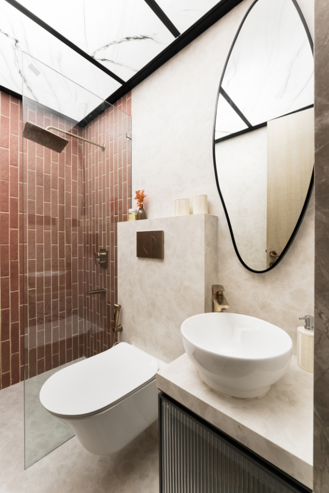 Veneer: Swastik Plywood & Veneers / Tiles: Simpolo Tiles and Bathware / Fabric: MΛSON HOME, OneUp Furnishing l Mumbai, SANSAAR | A D’DECOR BRAND / Wallpapers: Swastik Plywood & Veneers / Bathroom fittings: Kohler India / Artificial plants: PolliNation The Decor World | Home & Office Decor / THE GREEN PLANTS / Furniture: Trezure / Artefacts: Trezure, MΛSON HOME, Imaar Home