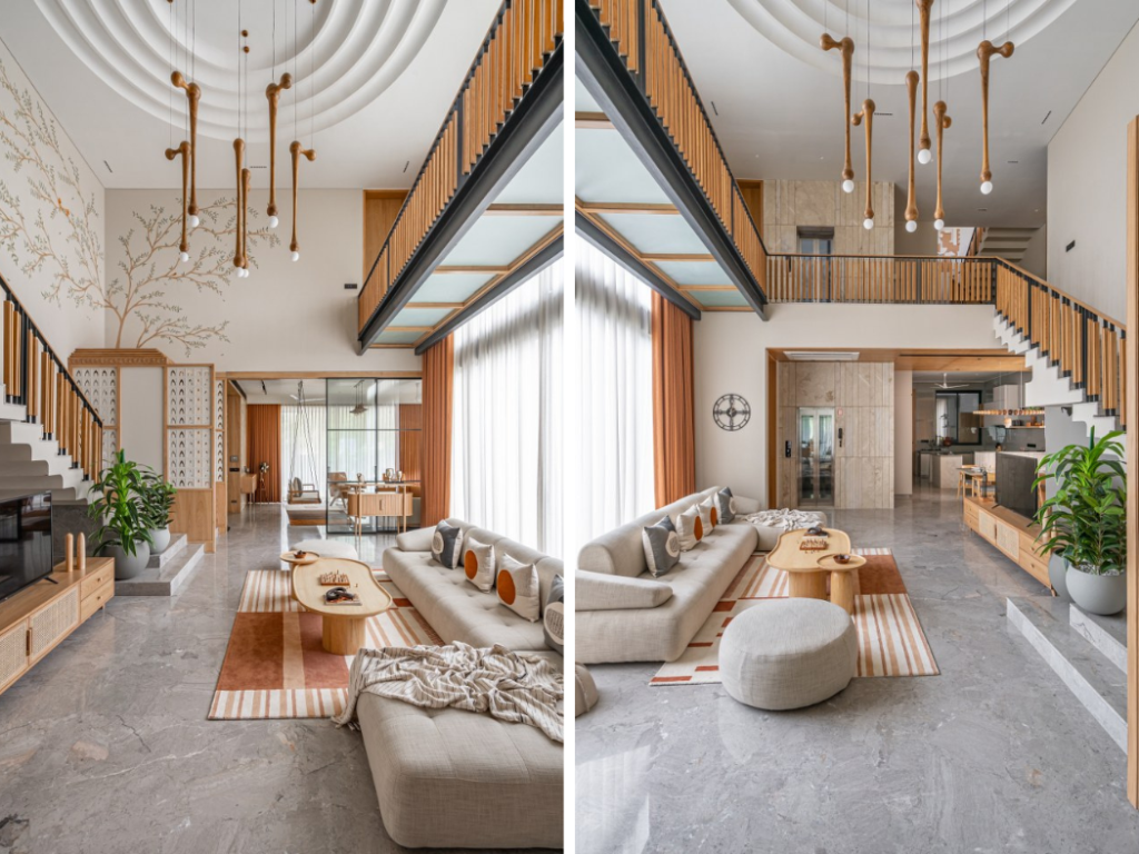 This residence stands to show the ability to blend modern design with nature-inspired elements. Located in Ahmedabad, it serves as a model for sustainable living, proving that luxury and eco friendliness can coexist. For family of four, it is more than a home- it is space where every corner tells a story of togetherness, growth, and the harmony with the landscape.