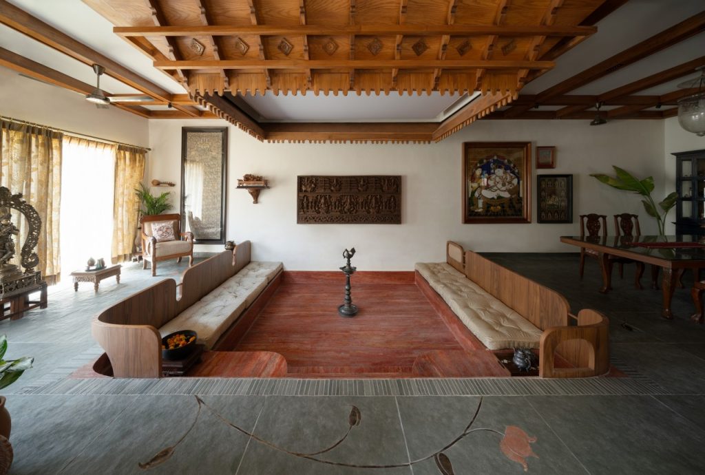 The heart of this ancestral house is a reimagined nadumuttam—a sunken conversation pit blending nostalgia and modern craft.