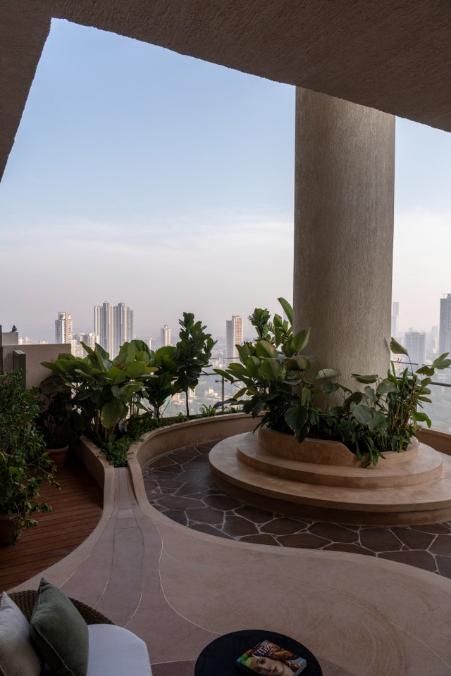 Situated in the heart of the bustling city centre of Mumbai, this high-floor duplex coastal apartment caters to a young family. It blends contemporary elegance with the whimsy of daily life and travel, akin to their renowned fashion label. The residence on the 45th floor overlooking the sea, provides the setting for the entire abode to be inspired by the beach. With overall simplicity and elegance of material and colour palette representing the sand, the use of handpicked quirky pieces of furniture in the house is like finding rare treasures.