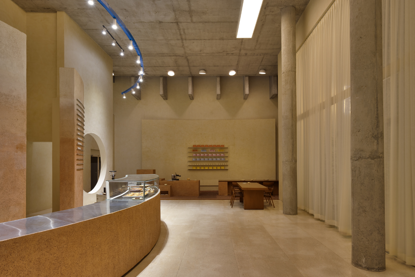 The scale of the coffee shop allowed for contemplation and restraint. Early design conversations focused on understanding the needs of the residents in the area. The requirement was for a calming, unforced space emerging as a clear imperative. “We wanted the space to belong as much to the neighbourhood as it did to the brand.” The architects emphasise that time was the key design driver.