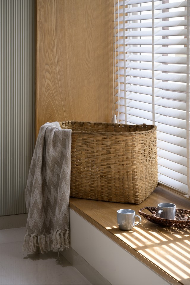 The house features simple shades and tones throughout. Each element—from the dining table to the beds, the sofa, and even the window seating was made alike with the principles of subtle, understated, comfortable, and highly functional.