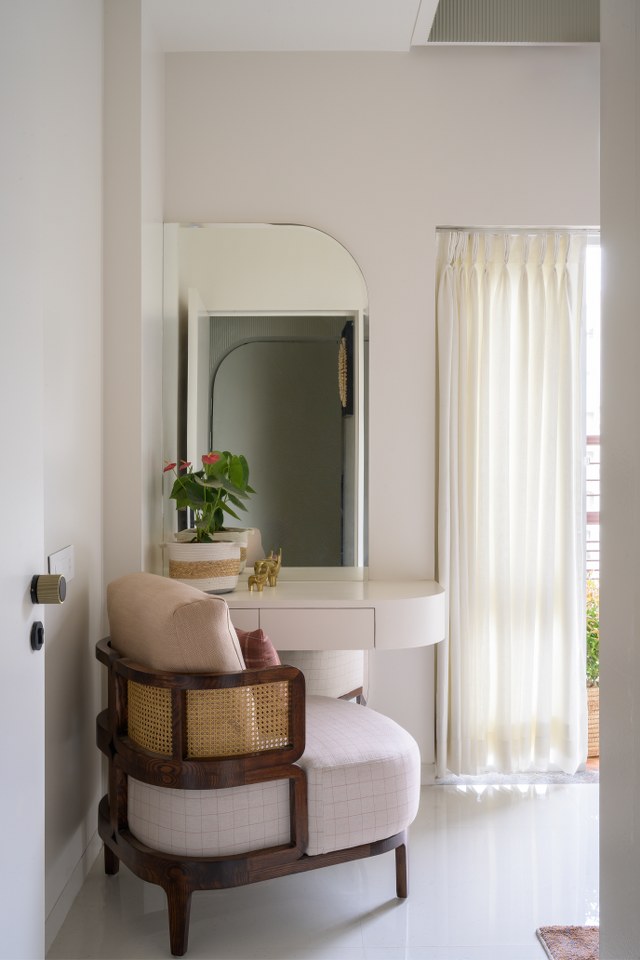 “The designers centered the design around creating a warm and tranquil sanctuary for a young couple, both doctors by profession—a cancer specialist and a dentist.” Their vision is a home that provides a soothing and relaxing atmosphere, offering a perfect retreat to unwind after the demands of their daily work, especially in the emotionally intense field of oncology.