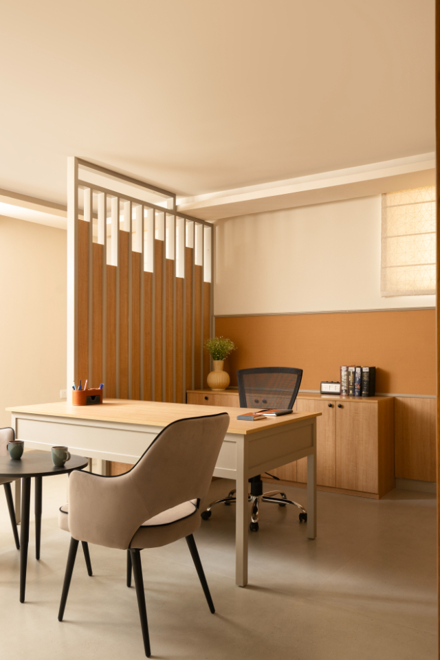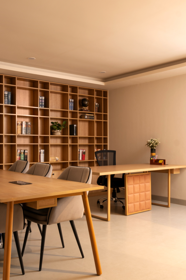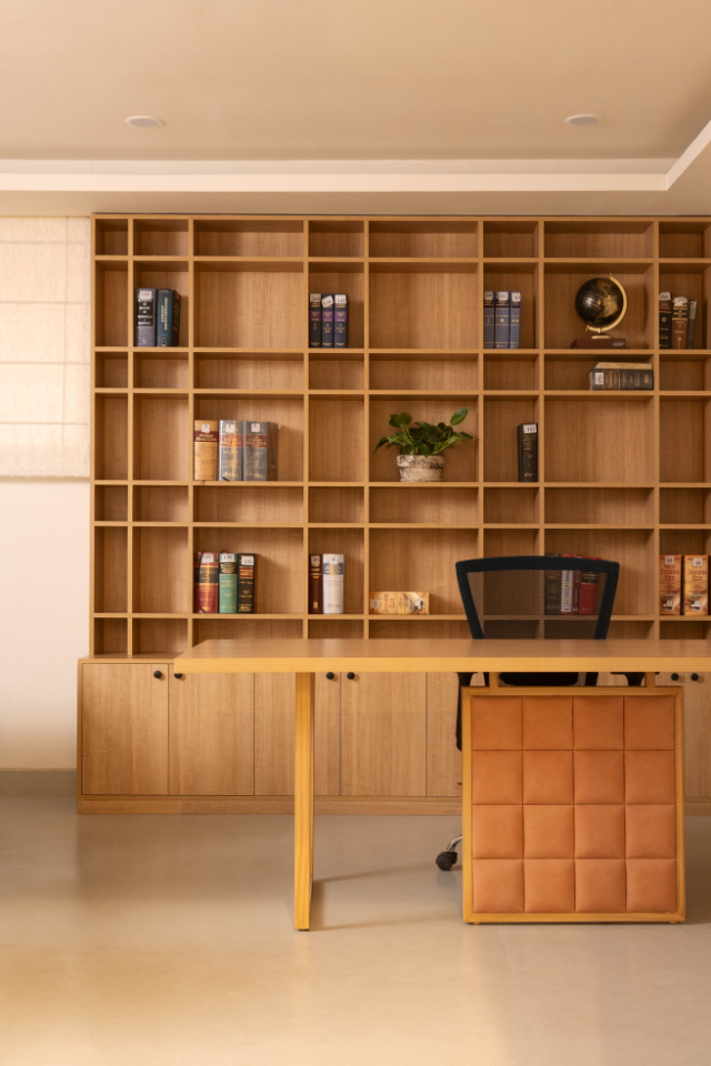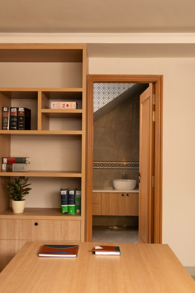 Beyond the residential space, Dakshinayan seamlessly integrates a functional workspace that reflects the diverse interests and professional needs of its occupants.