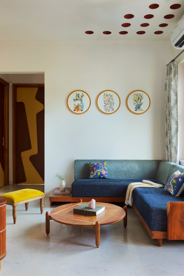 Rejecting the artifice of false ceilings, Vipul instead embedded sakore (earthen saucers) into the slab during casting. These modest terracotta forms create a textured ceiling that feels warm, human, and sustainable. What might otherwise have been hidden in convention is instead transformed into a